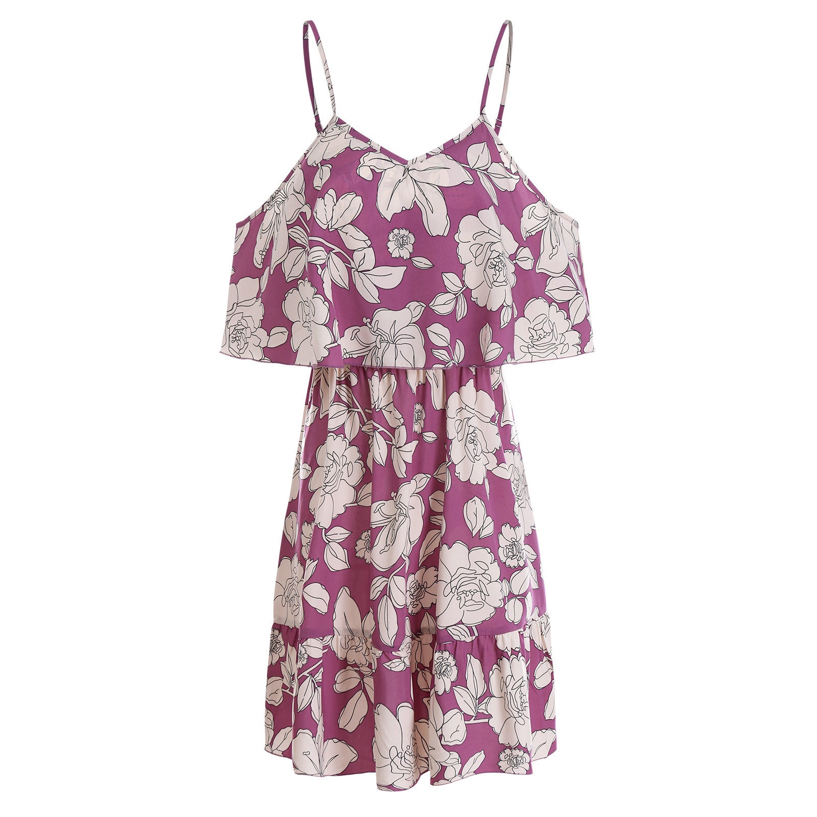 European And American Women's Sling Chiffon Floral Dress Short Skirt