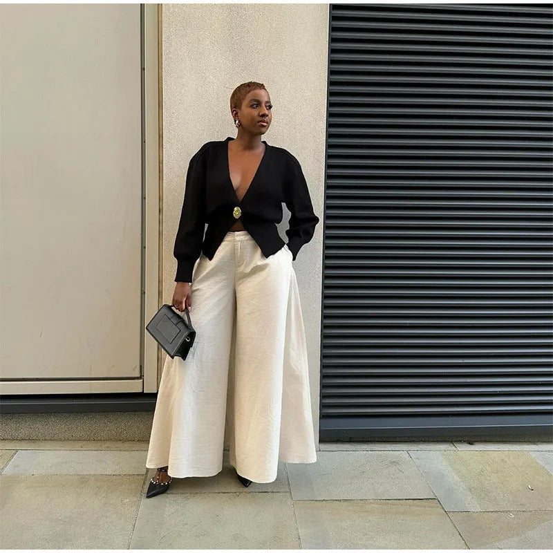 New V-neck Button Cardigan Fashion Knitted Sweater Top For Women Clothing