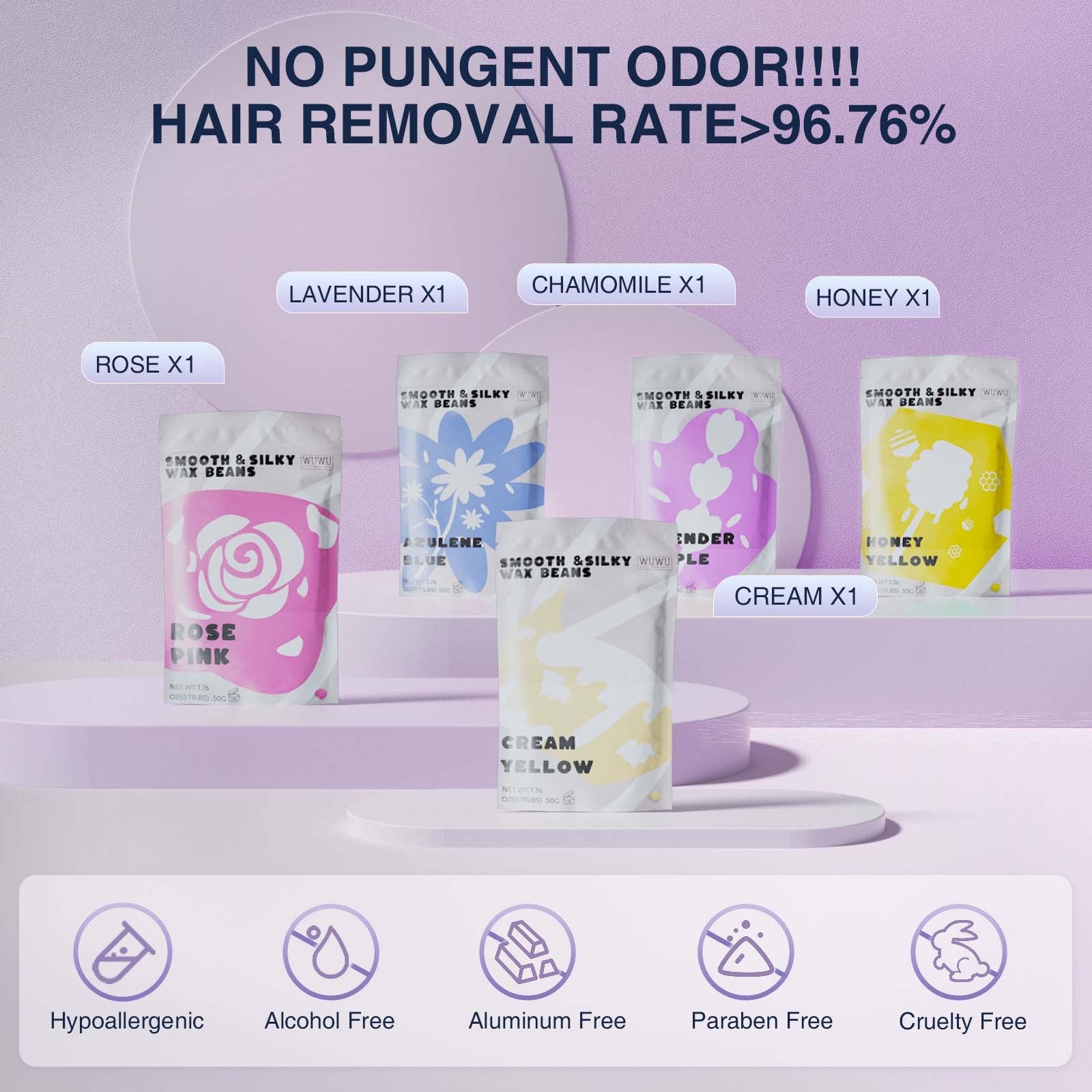 Get smooth, hair-free skin with WUWUVISTA's Wax Beads Kit! This 23-piece set includes everything you need for easy at-home waxing: