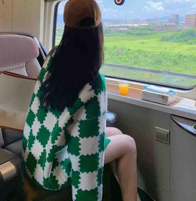 Women's Padded Checkerboard Plaid Sweater Cardigan